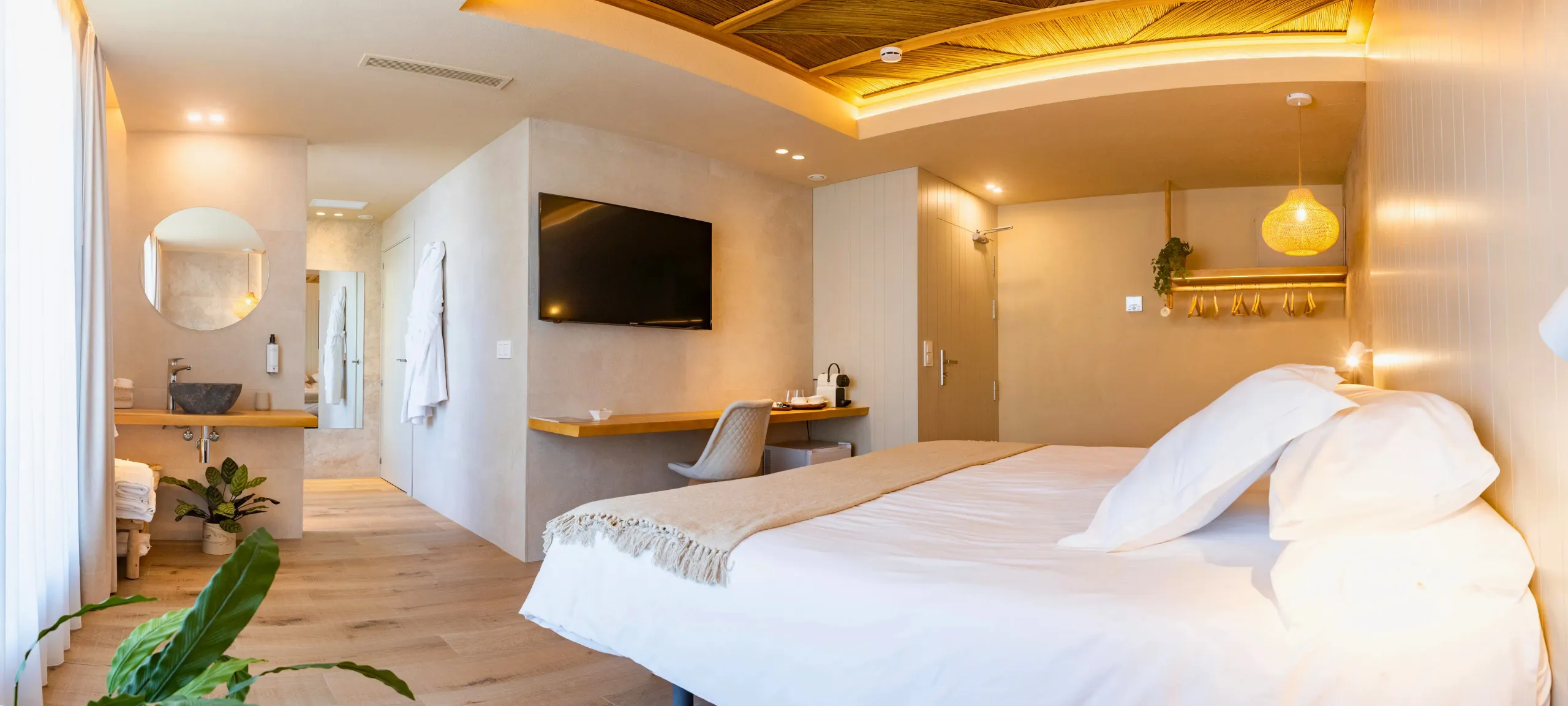 Con terraza privada de 22m2 y cama King Size de 200 x 200. Bañera con vistas al mar.